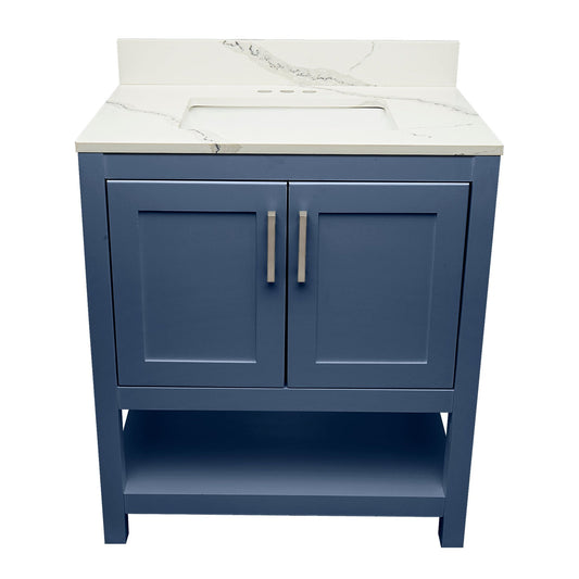 Ella's Bubbles Taos 31" Navy Blue Bathroom Vanity With Calacatta White Quartz Stone Top With Backsplash and Sink