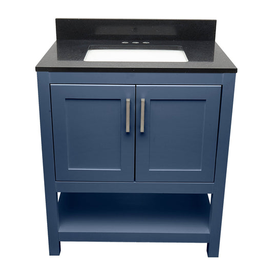Ella's Bubbles Taos 31" Navy Blue Bathroom Vanity With Galaxy Black Quartz Stone Top With Backsplash and Sink