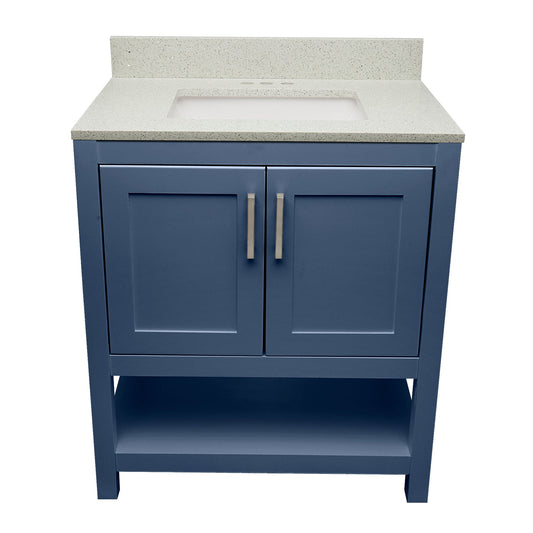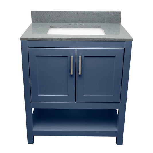 Ella's Bubbles Taos 31" Navy Blue Bathroom Vanity With Galaxy Gray Quartz Stone Top With Backsplash and Sink