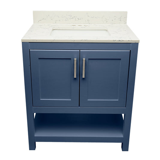 Ella's Bubbles Taos 31" Navy Blue Bathroom Vanity With Lyra White Quartz Stone Top With Backsplash and Sink