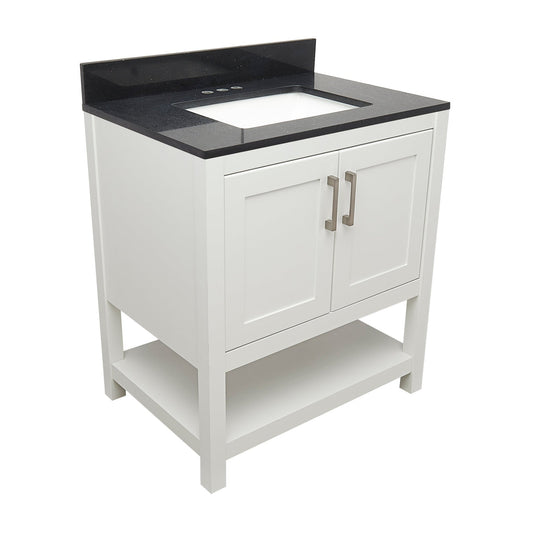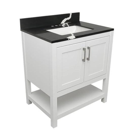 Ella's Bubbles Taos 31" White Bathroom Vanity With Galaxy Black Quartz Stone Top With Backsplash and Sink