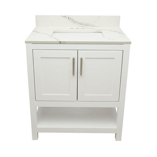 Ella's Bubbles Taos 31" White Bathroom Vanity With Calacatta White Quartz Stone Top With Backsplash and Sink