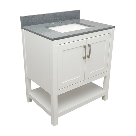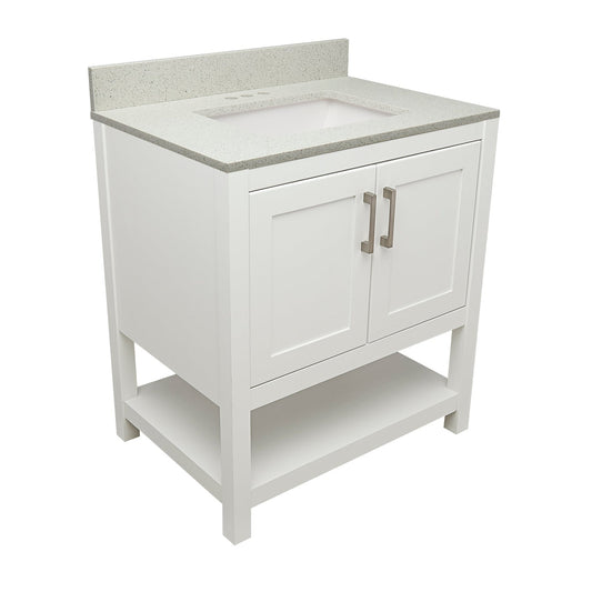 Ella's Bubbles Taos 31" White Bathroom Vanity With Galaxy Gray Quartz Stone Top With Backsplash and Sink