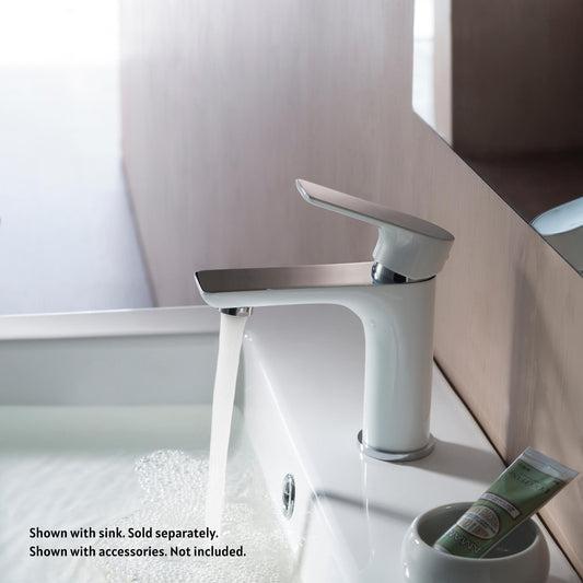 Blossom F01 120 4" x 6" Chrome / White Lever Handle Bathroom Sink Single Hole Faucet