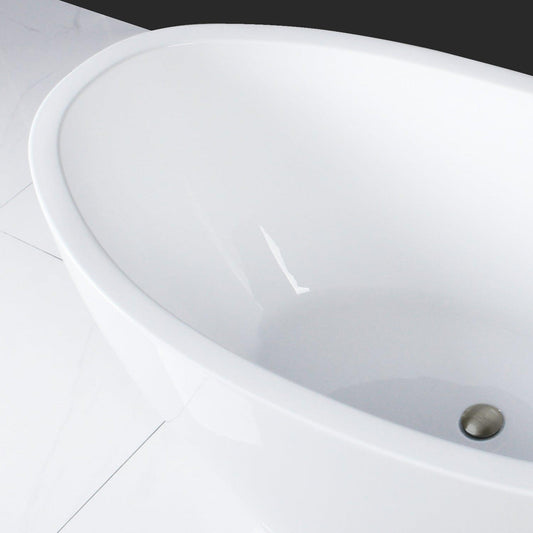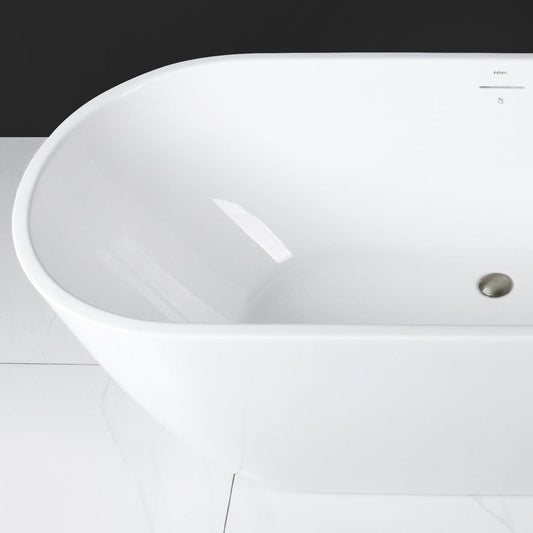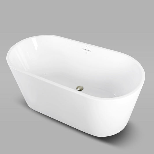 FerdY Bali 55" x 28" Oval Glossy White Acrylic Freestanding Roll Top Soaking Bathtub With Brushed Nickel Drain and Overflow