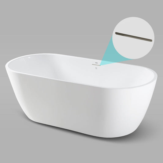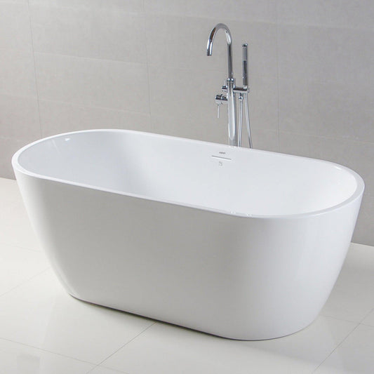 FerdY Bali 55" x 28" Oval Glossy White Acrylic Freestanding Roll Top Soaking Bathtub With Chrome Drain and Overflow