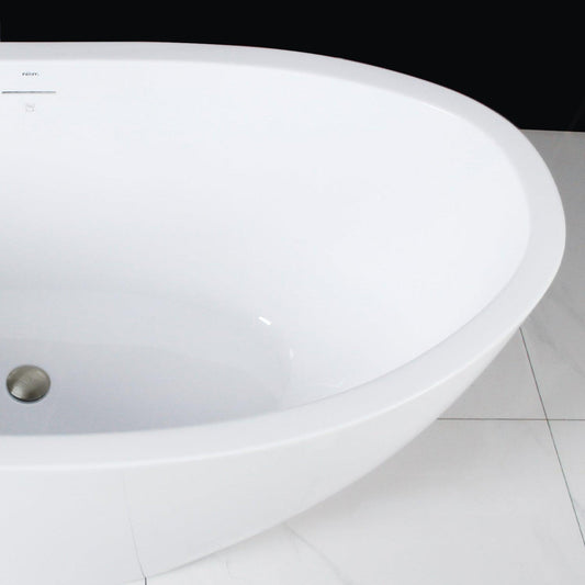FerdY Bali 67" x 30" Oval Glossy White Acrylic Freestanding Roll Top Soaking Bathtub With Brushed Nickel Drain and Overflow