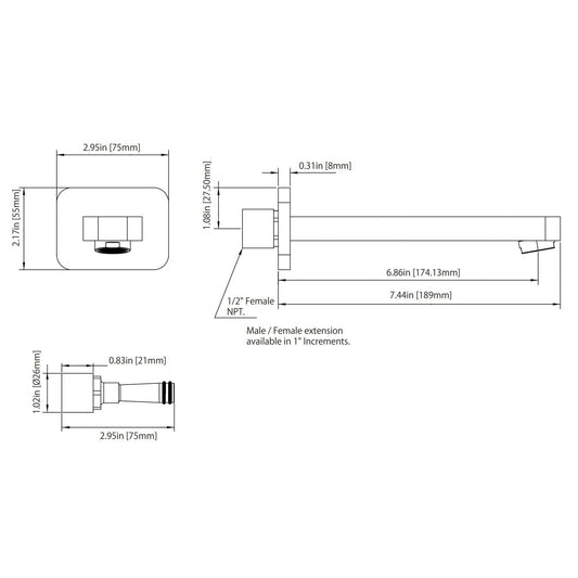 Flusso Faucets Serie 196 Chrome Wall-Mounted Bathroom Sink Faucet Valve Extension Kit