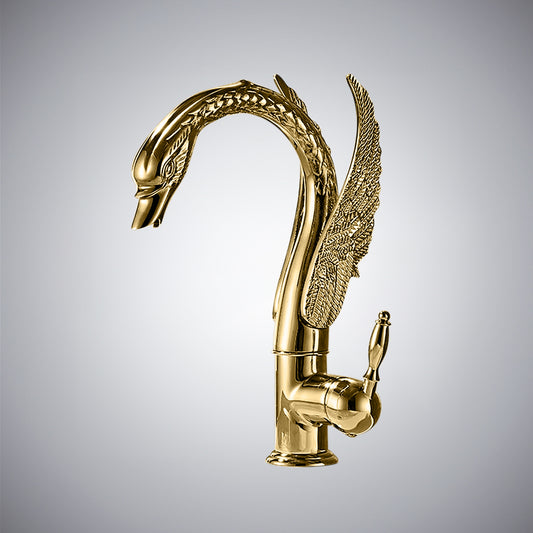 Fontana Beniarjo Antique Swan Shape Dual Handle Hot And Cold Champagne Faucet