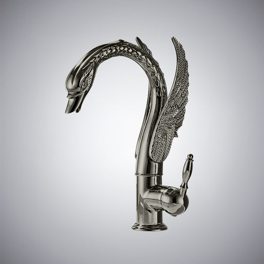 Fontana Beniarjo Antique Swan Shape Dual Handle Hot And Cold Gun Metal Gray Faucet