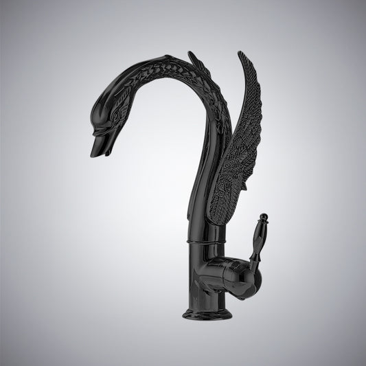 Fontana Beniarjo Antique Swan Shape Dual Handle Hot And Cold Matte Black Faucet