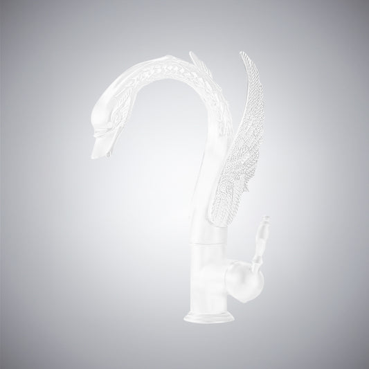 Fontana Beniarjo Antique Swan Shape Dual Handle Hot And Cold Matte White Faucet