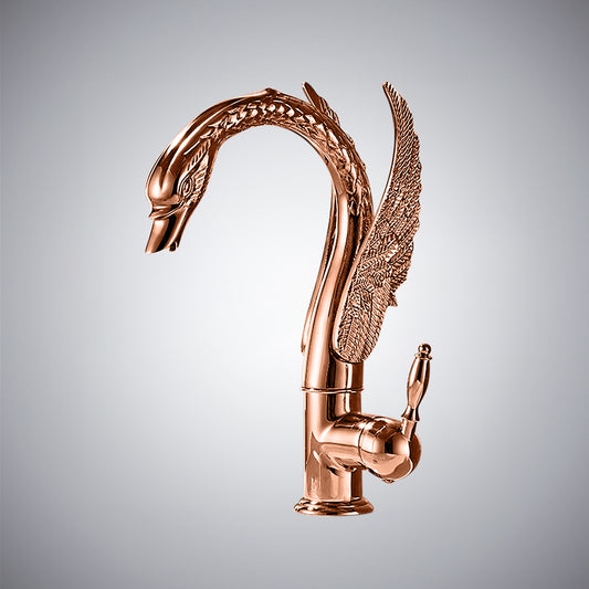 Fontana Beniarjo Antique Swan Shape Dual Handle Hot And Cold Rose Gold Faucet
