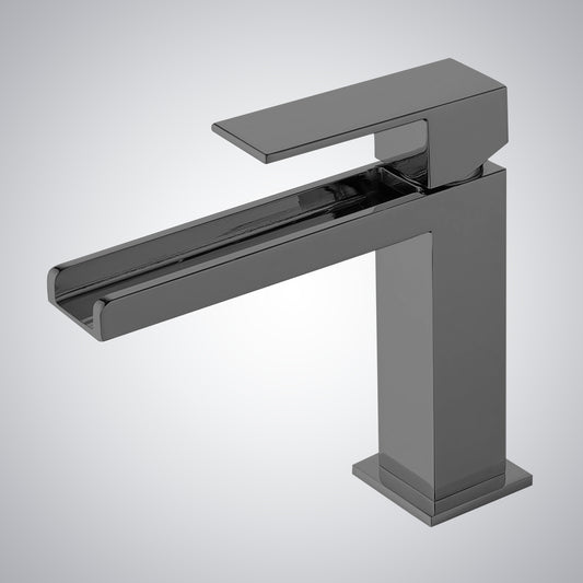 Fontana Seyne 1.2 GPM Thermostatic Waterfall Gun Metal Gray Deck Mounted Basin Faucet