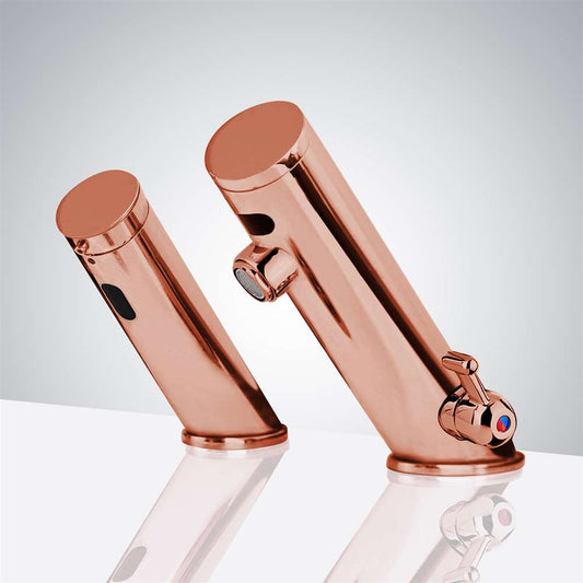 Fontana Automatic Temperature Control Thermostatic Sensor Tap Rose Gold Faucet and Matching Soap Dispenser