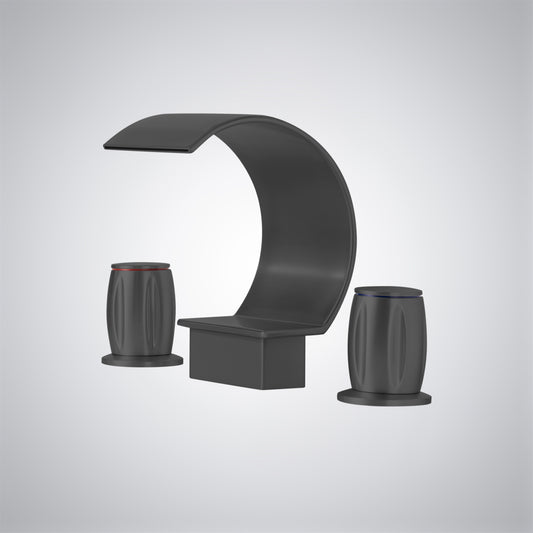 Fontana Bione 1.2 GPM Premium Thermostatic Deck Mounted Gun Metal Gray Waterfall Faucet