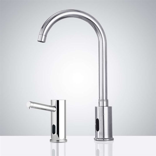 Fontana Gooseneck Dual Commercial Automatic Sensor Chrome Faucet and Soap Dispenser