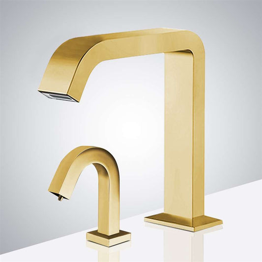 Fontana Geneva Touchless Motion Sensor Gold Faucet and Automatic Soap Dispenser