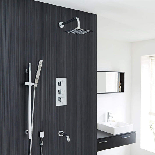 Fontana Liverpool Chrome 12" Wall-Mounted Thermostatic Rainfall Shower System With Hand Shower and Without Water Power LED Lights