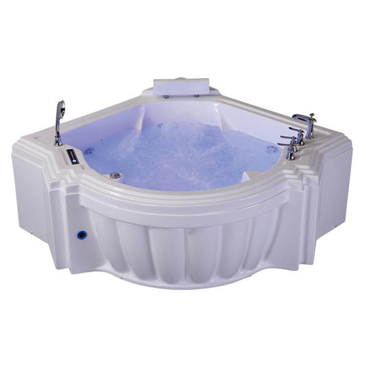 Fontana Sierra 65" x 65" 2-Person White Sector Freestanding Indoor Waterfall Whirlpool Massage Corner Acrylic Bathtub