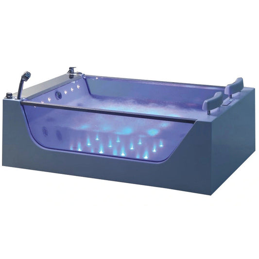 Fontana Sierra 71" x 47" 2-Person White Rectangular Freestanding Whirlpool Massage Indoor Acrylic Glass Bathtub With Bubbles LED Multicolor Light