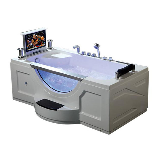 Fontana Sierra Single Seater White Rectangular Freestanding Personal Whirlpool Massage Indoor Acrylic Bathtub With TV
