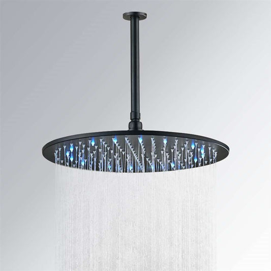 Fontana 20" Ceiling Mounted Matte Black Round LED Rainfall Showerhead