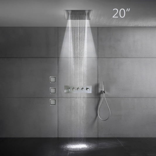 Fontana Cremona Brushed Nickel Recessed Ceiling Mounted Thermostatic LED Waterfall Rainfall Shower System With Hand Shower and 3-Jet Body Sprays