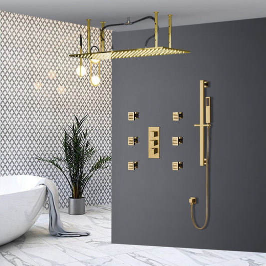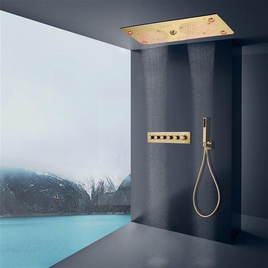 Fontana Saint Denis Gold Large Ceiling Mounted LED Rain Shower System With 6-Body Jets & Hand Shower
