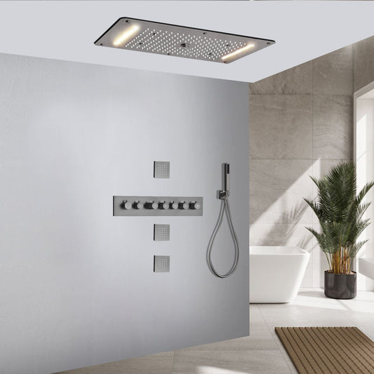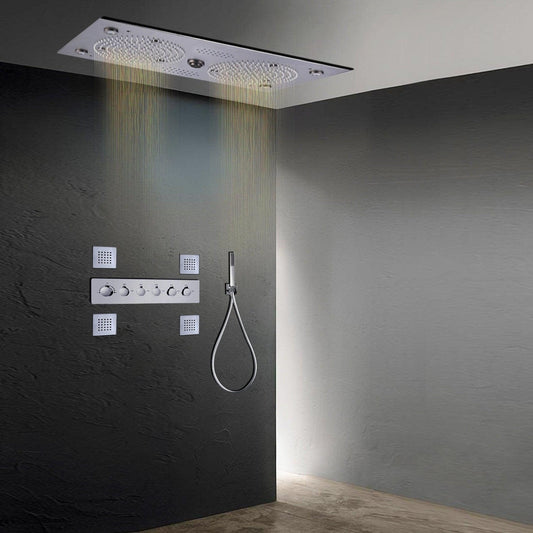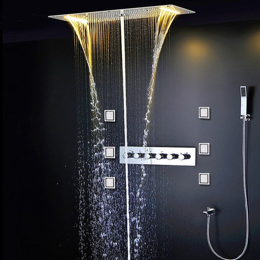 Fontana Toulouse Stainless SteelCeiling Mounted Thermostatic LED Shower System With Hand Shower, 6-Body Jets and Spout