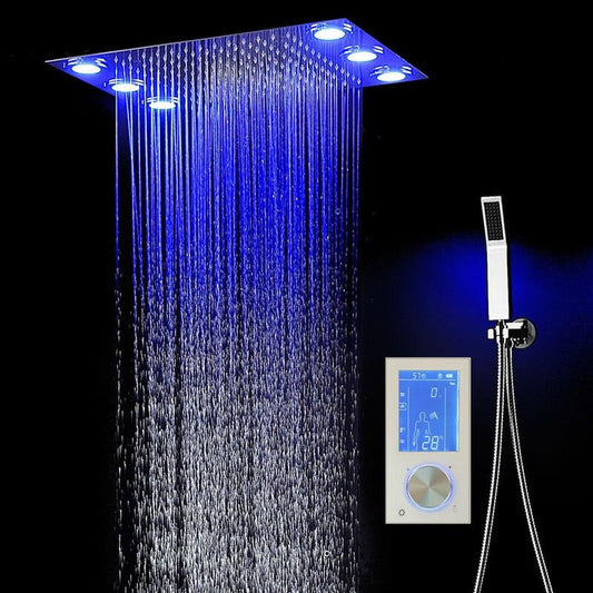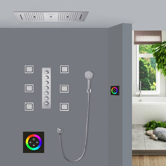 Fontana Foggia Chrome Recessed Ceiling Mounted Thermostatic Touch Panel Controlled LED Musical Rainfall Shower System With Round Hand Shower and 6-Jet Body Sprays