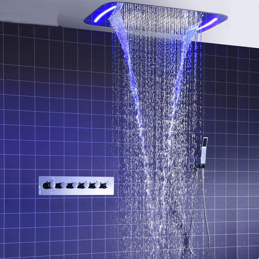 Fontana Chatou Chrome Ceiling Mounted LED Changing Rainfall Shower System With 3-Body Jets and Hand Shower