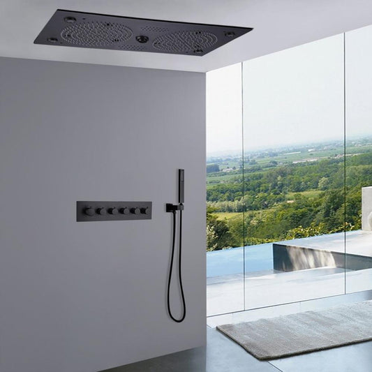 Fontana Naples Matte Black Recessed Ceiling Mount Thermostatic LED Rainfall Shower System With Sound System and Hand Shower