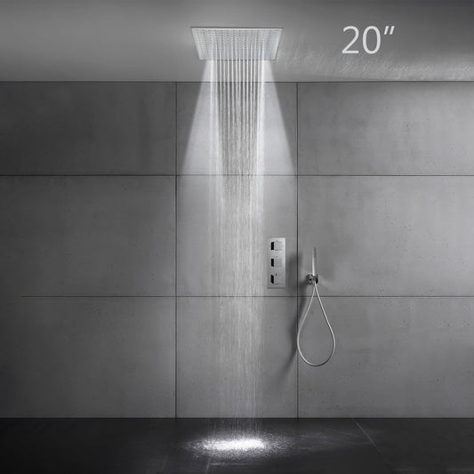 Fontana Bravat 16" Chrome Wall Mounted Thermostatic Rainfall Shower System With 3-Jet Body Sprays and Hand Shower