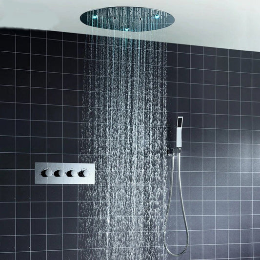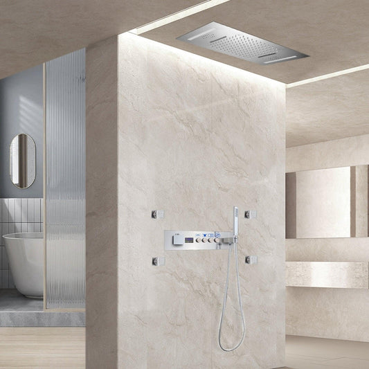 Fontana Florence Chrome Polished Ceiling Mounted Musical Thermostatic LED Rainfall Shower System With 4-Body Jets and Hand Shower