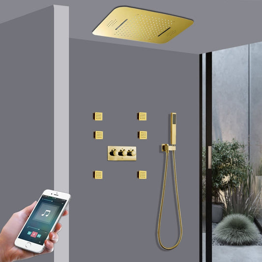 Fontana Arezzo Gold Recessed Ceiling Mounted Thermostatic LED Musical Phone Controlled Rainfall Waterfall Shower System With 6-Jet Body Sprays and Hand Shower
