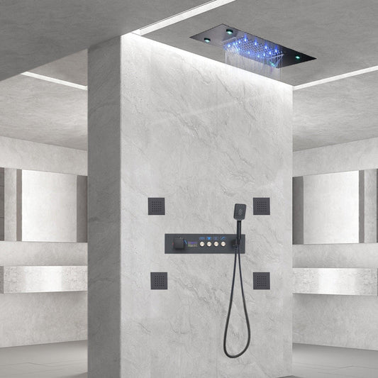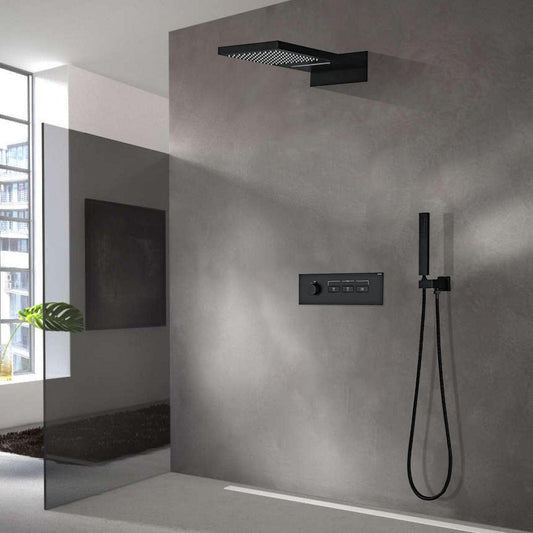 Fontana Cagliari Matte Black Recessed Ceiling Mounted Thermostatic LED Waterfall Rainfall Shower System With 6-Body Jets and Hand Shower