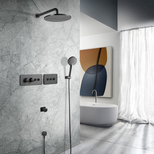 Fontana Varese Matte Black Wall-Mounted 2-Functions Thermostatic Rainfall Shower System With Hand Shower