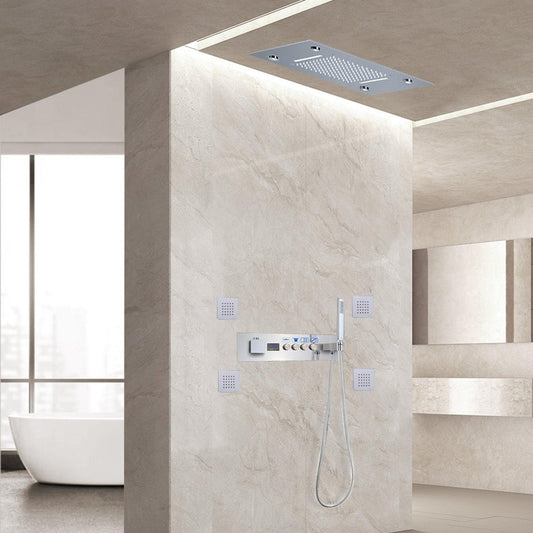 Fontana Rome Chrome Recessed Ceiling Mounted LED Thermostatic Waterfall Rainfall Shower System With 4-Jet Body Sprays and Hand Shower