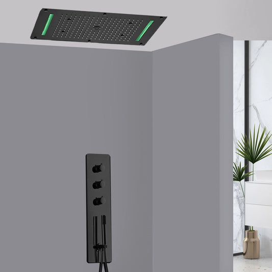 Fontana Alessandria Matte Black Recessed Ceiling Mounted Thermostatic Classy LED Rainfall Shower System With Hand Shower