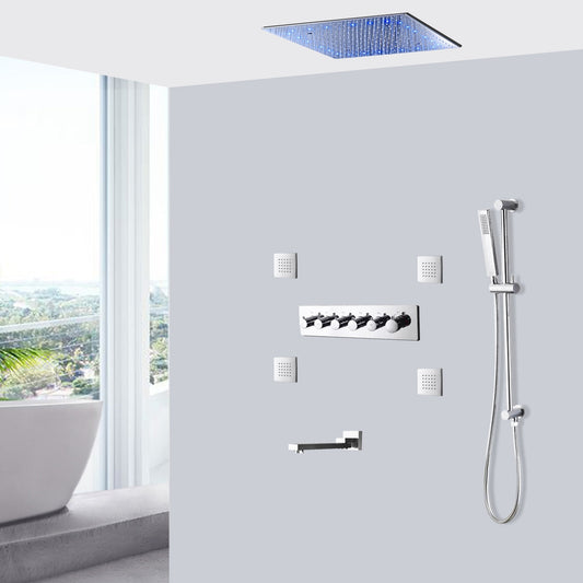 Fontana Aversa Chrome Polished Ceiling Mounted LED Thermostatic Rainfall Shower System With Hand Shower and 4-Jet Body Sprays