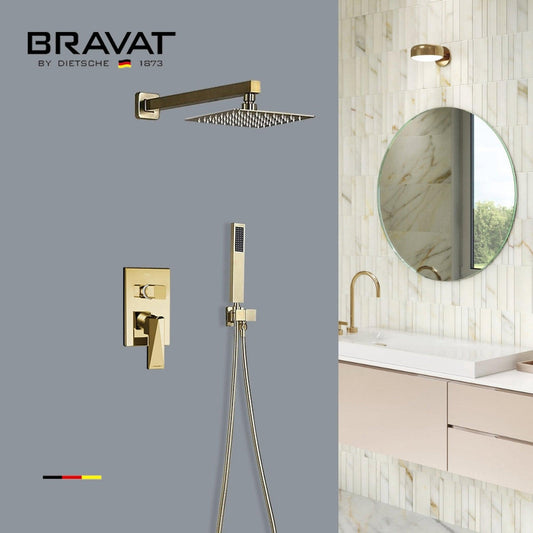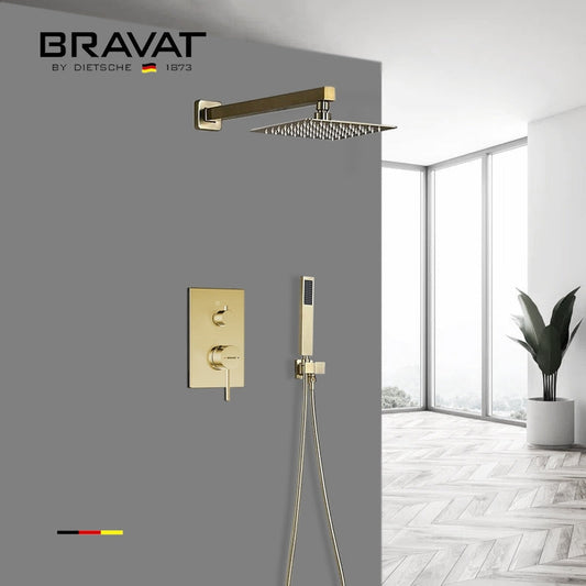 Fontana Bravat FS-9563 Brushed Gold Wall-Mounted Rainfall Mixer Shower Set