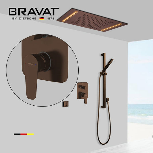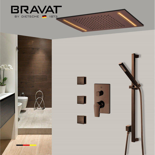 Fontana Bravat Light Oil Rubbed Bronze Ceiling Mounted Remote Controlled LED Rainfall Shower System With Hand Shower and 3-Jet Body Sprays