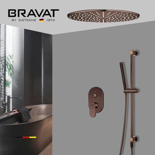 Fontana Bravat Light Oil Rubbed Bronze Round Ceiling Mounted LED Rainfall Shower System With Hand Shower