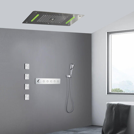 Fontana Brescia Chrome Recessed Ceiling Mounted Musical Phone Controlled Thermostatic Luxurious LED Waterfall Rainfall Shower System With 3-Jet Body Sprays and Hand Shower