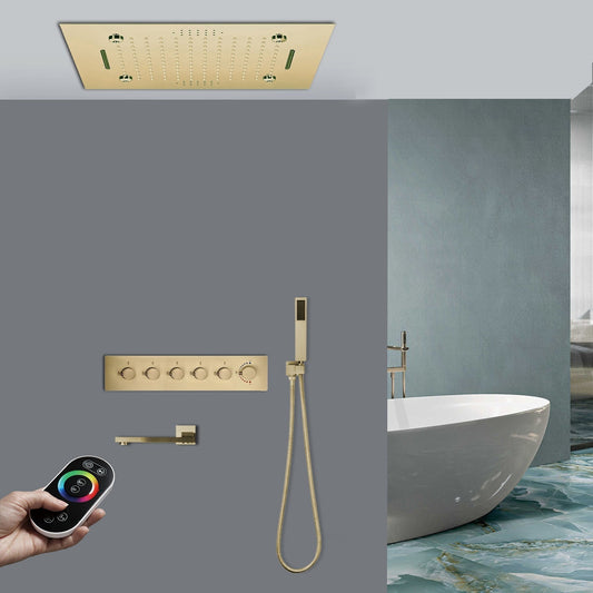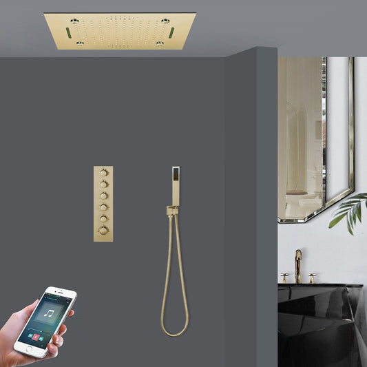 Fontana Fondi Brushed Gold Recessed Ceiling Mounted Remote Controlled Thermostatic LED Waterfall Rainfall Musical Shower System With Hand Shower