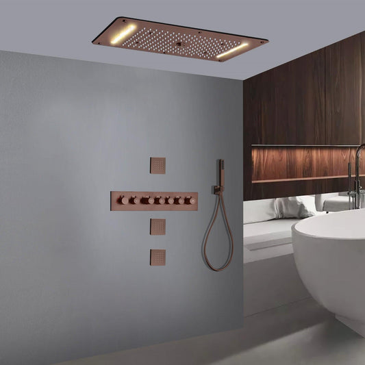 Fontana Massa Light Oil Rubbed Bronze Recessed Ceiling Mounted Thermostatic LED Waterfall Rainfall Shower System With Hand Shower and 3-Jet Body Sprays