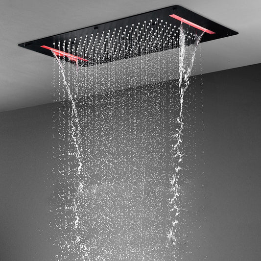 Fontana Pescara Matte Black Recessed Ceiling Mount Luxurious Touch Panel Controlled Thermostatic LED Musical Rainfall Waterfall Mist Shower System With Hand Shower and 3-Jet Body Sprays