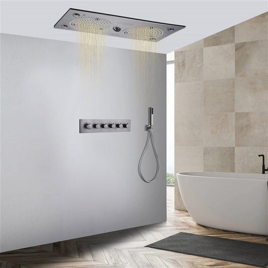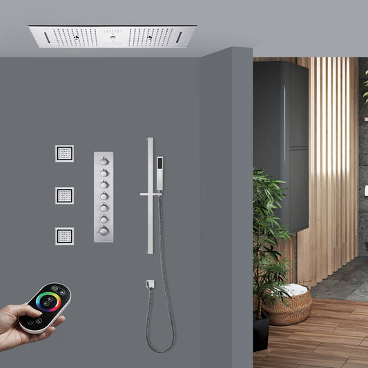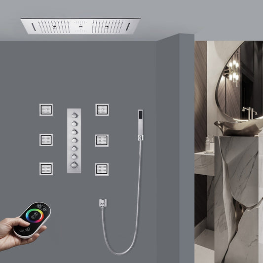 Fontana Alba Chrome Recessed Ceiling Mounted LED Thermostatic Remote Controlled Musical Rainfall Shower System With 3-Jet Body Sprays and Hand Shower