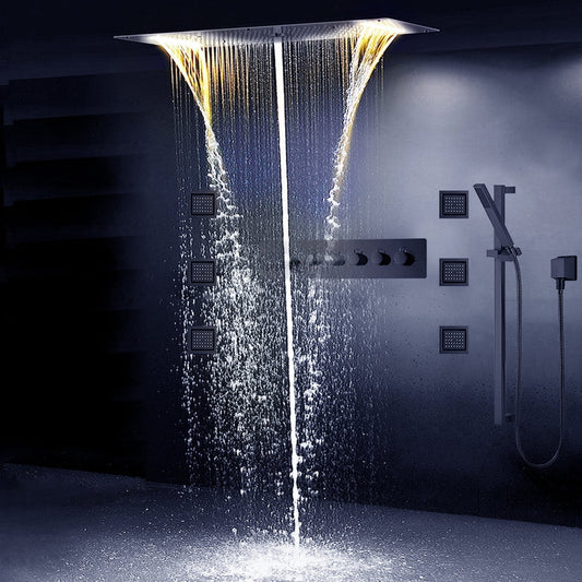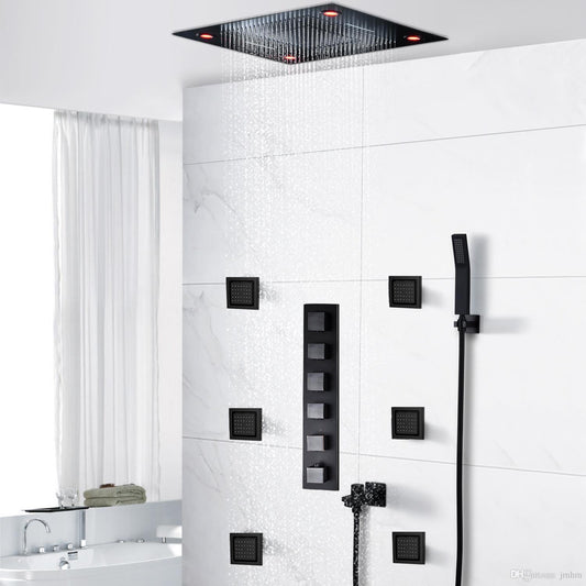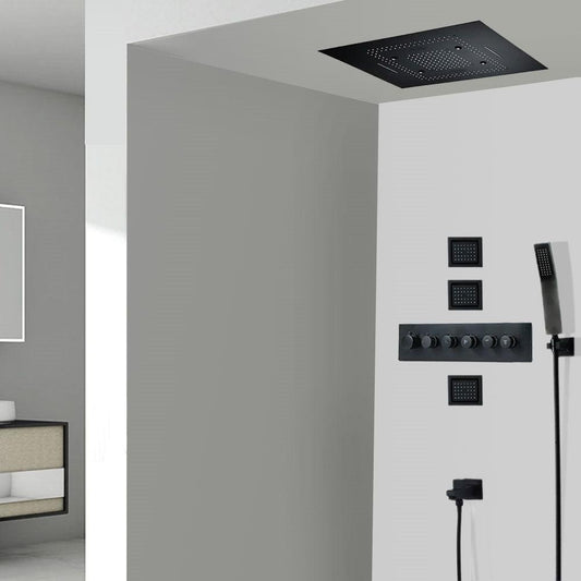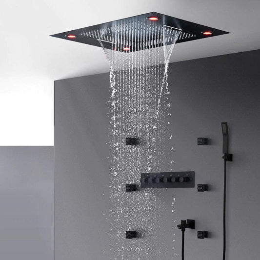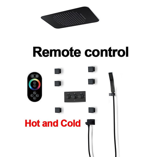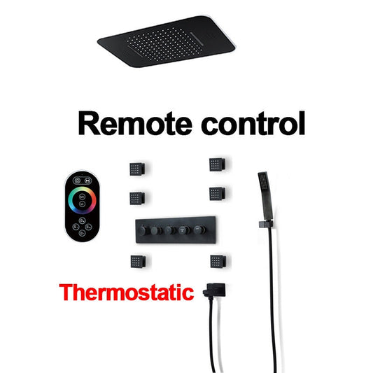 Fontana Catania Matte Black Recessed Ceiling Mounted LED Remote Controlled Thermostatic Musical Rainfall Waterfall Mist Shower System With Hand Shower and 3-Jet Body Sprays